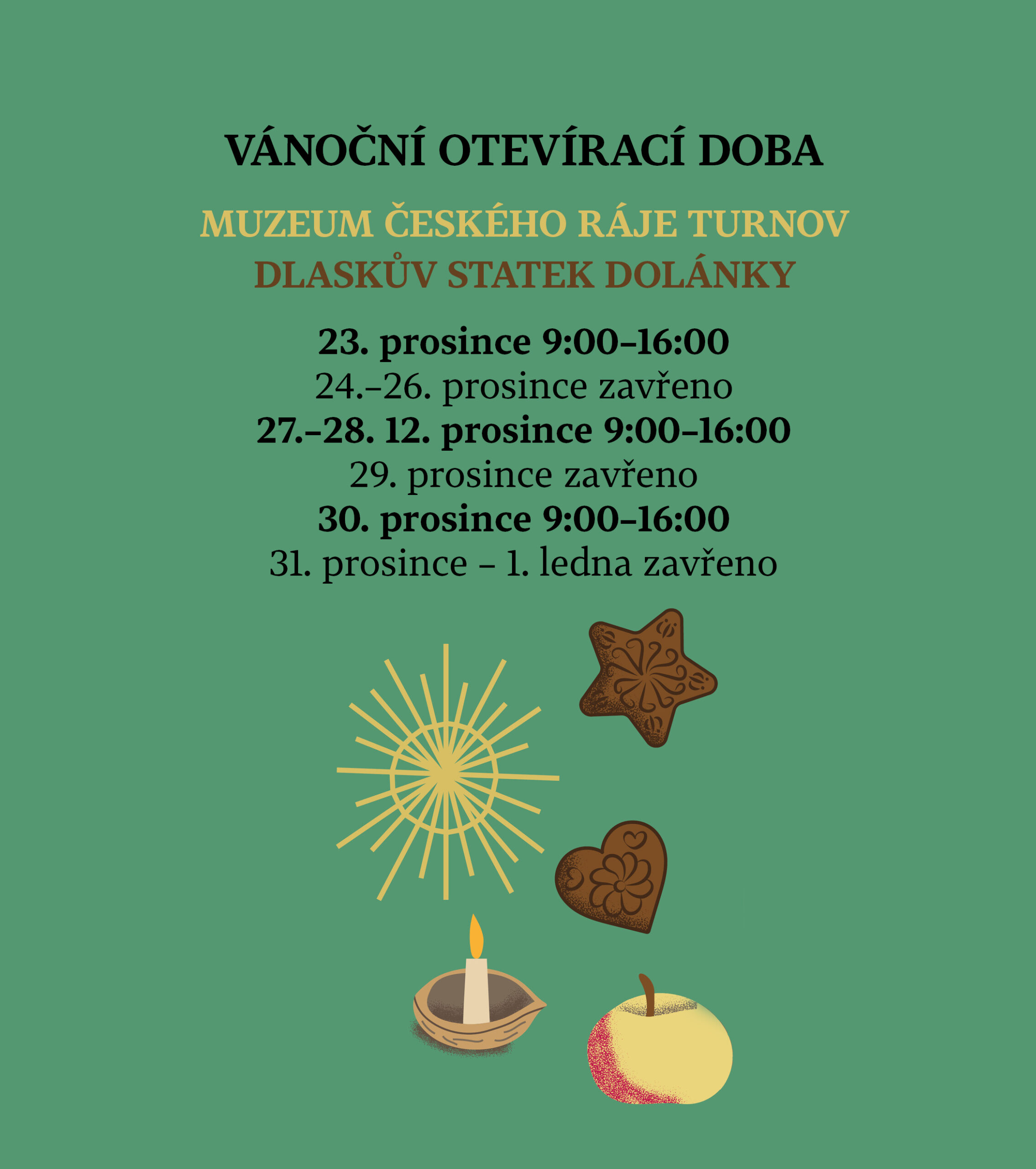 Muzeum Českého ráje v Turnově otevřeno denně mimo pondělí 9:00–16:00.