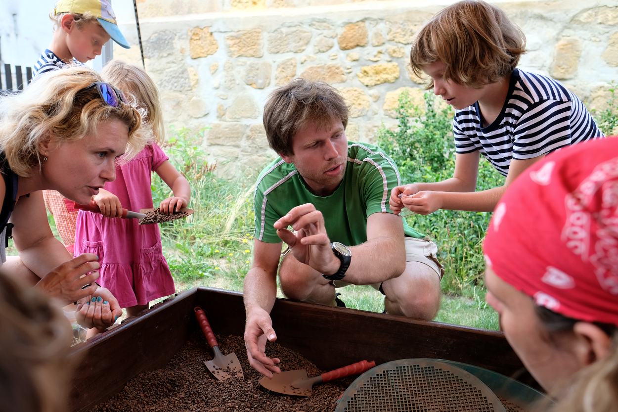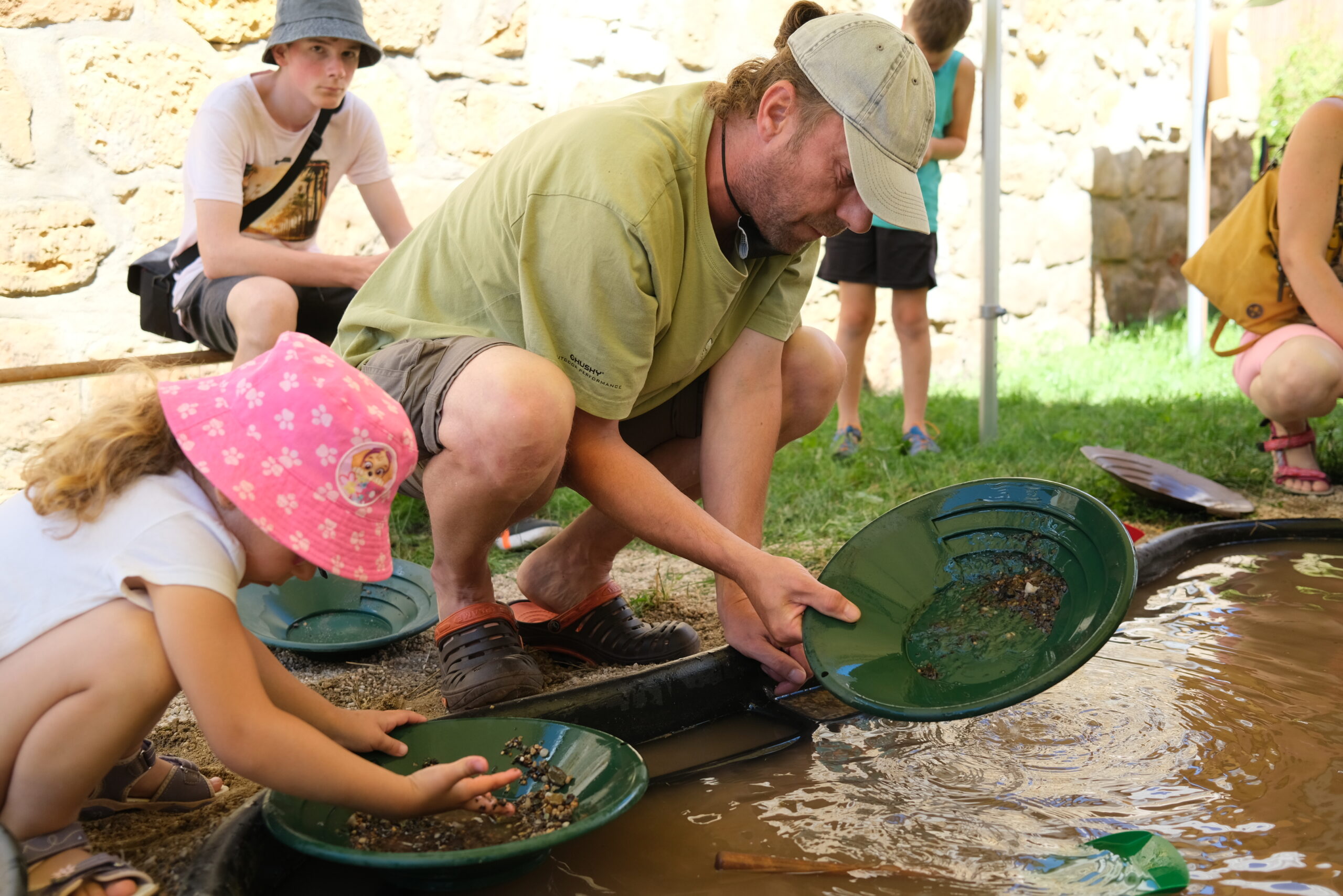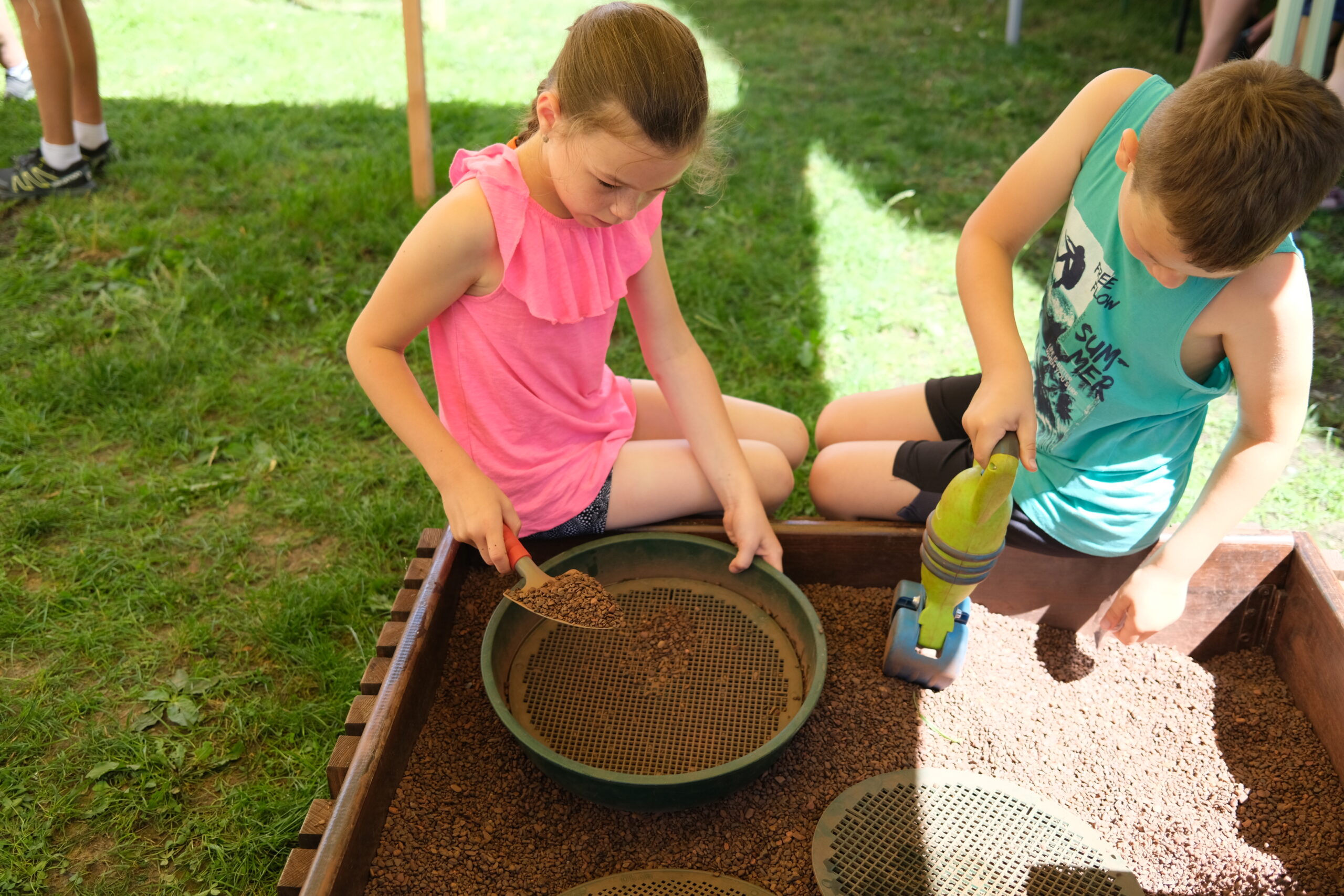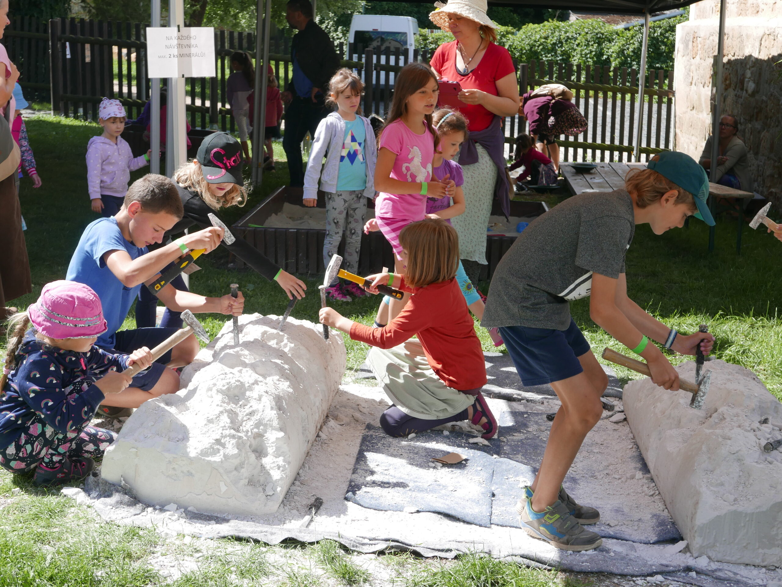 Návštěvníci si budou moci odlít a vybarvit vlastní sádrovou zkamenělinu, vyzkoušet si rýžování českých granátů a olivínů pomocí skutečné rýžovací pánve nebo hledat minerály ve štěrkové drti. Čeká je také objevování dinosauří kostry, dobývání drahých kamenů z odlité žíly pomocí kladívka a majzlíku a procházka po naučné geostezce.