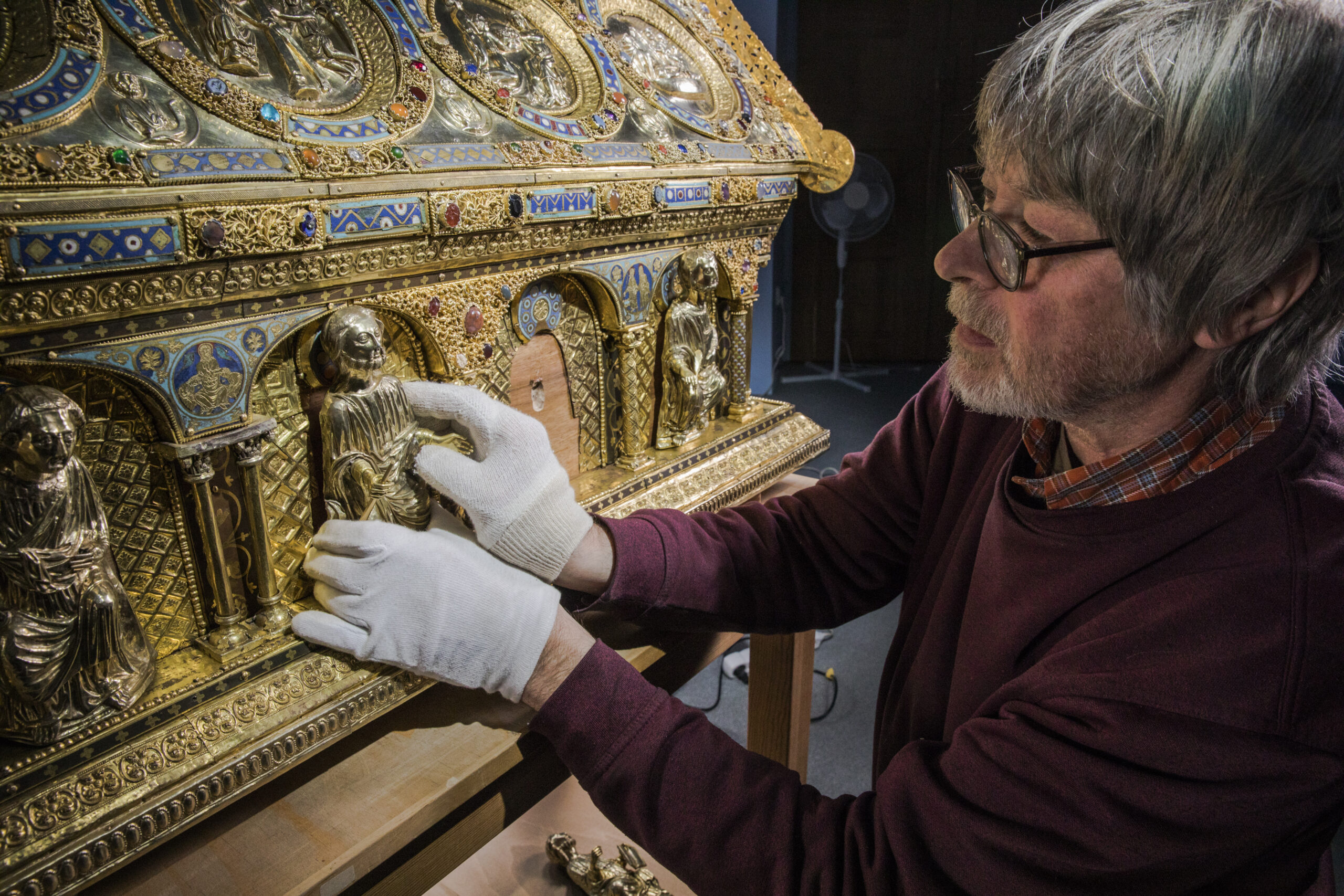 Při příležitosti 40 let od objevení této klíčové památky románského zlatnictví, které jsme si připomněli v závěru roku 2025, představí restaurátor a šperkař Andrej Šumbera relikviář s jeho výzdobou a nechá nahlédnout do procesu jeho dlouhého a pečlivého restaurování, u něhož byl po celou dobu přítomen. Během procesu obnovy zkoumal Andrej Šumbera s kolegy nejen ikonografii výzdoby relikviáře, ale zejména – leckdy už zapomenuté – řemeslné postupy, které společně rekonstruovali, aby výsledná podoba památky byla co nejautentičtější. Precizně zrestaurovaný relikviář, prezentovaný ve stálé expozici zámku v Bečově nad Teplou, tak společně s důkladně nashromážděnou restaurátorskou dokumentací může odborné veřejnosti sloužit také jako učebnice středověkých zlatnických technologií.