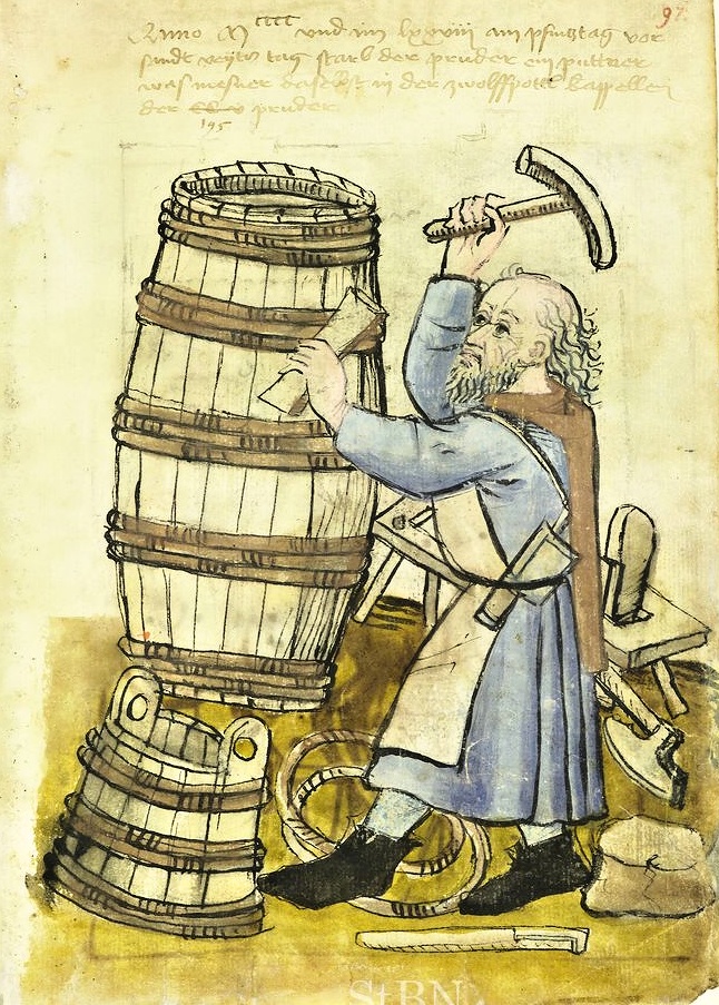 K pivovarnictví bezpochyby od nepaměti patří i řemesla zaměřující se na výrobu dřevěných nádob. Původně se rozlišovalo mezi bednáři a bečváři, přičemž rozdíl mezi nimi byl definován hlavně velikostí jejich produktů. Bednáři pracovali s měkkým dřevem a vyráběli především nádobí a menší nádoby na denní použití – různé konve, vědra, máselnice či menší sudy, které stahovaly březovými, lískovými či habrovými obručemi. Bečváři naproti tomu vyráběli velké bečky, kádě či ležácké a transportní sudy, povětšinou z kvalitního tvrdého dřeva, do kterých se vešly stovky litrů tekutin. Obruče používali kovové, zejména železné. V průběhu 19. století se výraz bečvářství přestával používat a řemesla splynula v jedno pod označením bednářství.