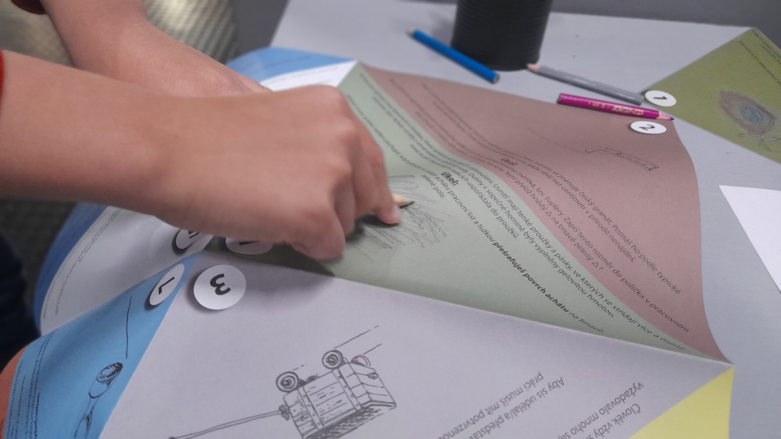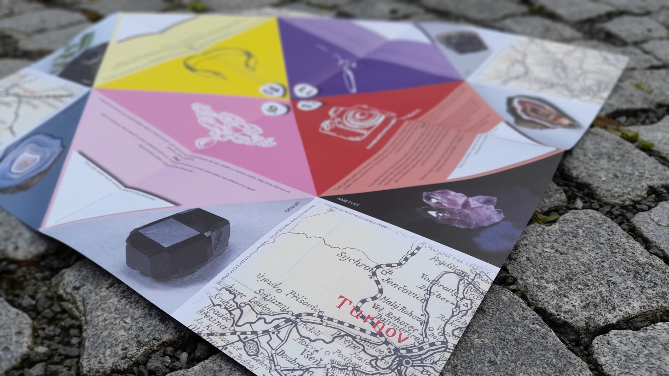 Na cestě kamene provází své „cestovatele“ pracovní list, který není tradičním didaktickým materiálem klasického formátu, ale jedná se o pestrou skládanku – hru, kterou si „cestovatelé“ v expozicích postupně skládají. Nebudeme prozrazovat název hry, ale ponecháme trpělivým „cestovatelům“ překvapení a radost, odnést si tuto hru s sebou domů jako vzpomínku na turnovské muzeum. Další jedinečnost v sobě pracovní listy nesou v možnosti využít jich jako plochu pro otisky razítek, šablon, perforace, frotáže apod. – nejsou určené pouze pro zápis informací.