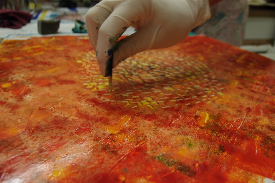 Monotyp a kresba do barevného podkladu