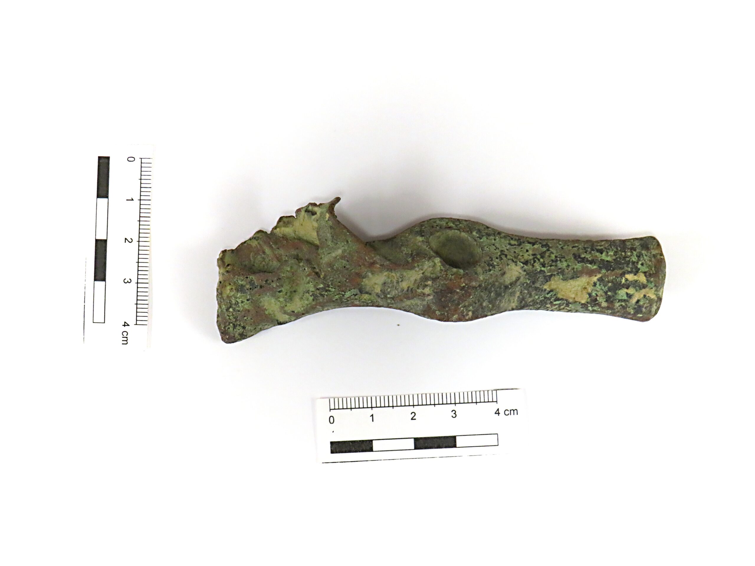 Dalším exponátem je měděný sekeromlat s rozšířeným ostřím, který má uprostřed těla otvor pro nasazení dřevěného topůrka. Má deformované ostří, k čemuž došlo patrně v době před pohozením či ztrátou předmětu. Nelze rozhodnout, zda k poškození došlo nezáměrně nevhodnou manipulací, či záměrně například z rituálních důvodů. Zbraň můžeme zařadit do období středního až mladšího eneolitu (3350 – 2200 př. n. l.) a do oblasti Krkonoš se dostal zřejmě až z území Panonie, což dokládá pravěké pohyby lidí či dokonce obchod s touto oblastí.
