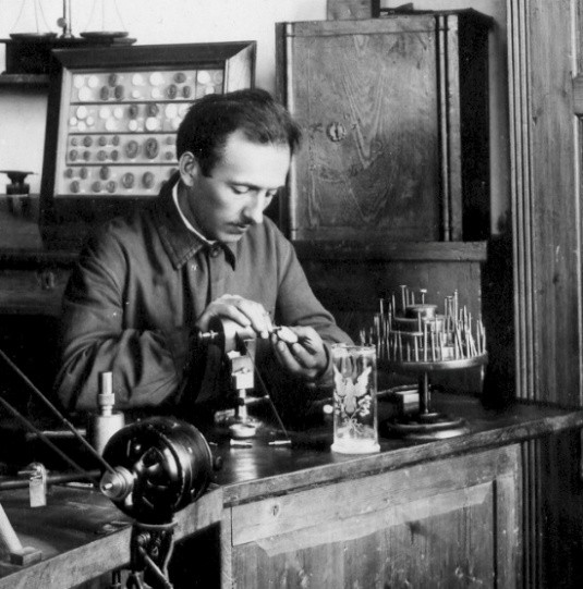 Karel Tuček (1893–1977) byl významný český glyptik, mezi lety 1918-53 učitel rytí (řezání) do drahých kamenů v odborné škole pro zpracování drahých kamenů a zlatnictví v Turnově. Jeho učitel, prof. Josef Drahoňovský, jej ale vždy nabádal, aby se věnoval i rytí skla. Tuček je pak zvládl natolik, že kromě gem ryl většinu Drahoňovského prací ve skle, mezi nimi i Svatováclavský pohár, dar českých katolíků papeži při příležitosti pouti do Říma, k uctění českého světce 1929. Tuček si pro svou volnou tvorbu často vybíral náměty z národních dějin nebo díla českých výtvarných umělců. V našem případu, váze pro turnovského právníka JUDr. Václava Šolce, to byla jedna z cyklu maleb Josefa Mánesa Život na panském sídle, které Mánes vytvořil v roce 1856. Od té doby byly líbivé scény hrajících si dětí zpopularizovány v knižních vydáních, pohlednicích a příležitostných tiscích.