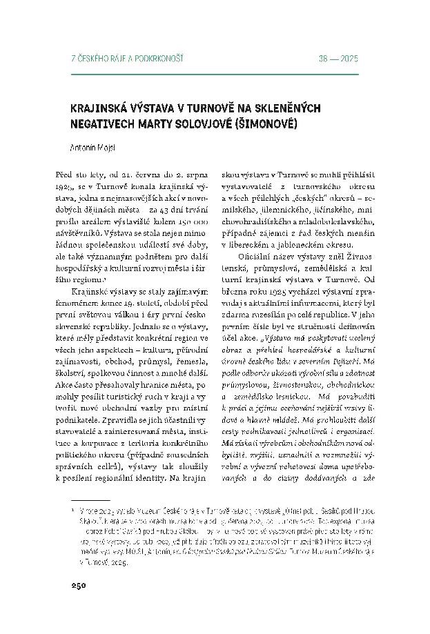 V kratších textech v rubrice „Drobnosti“ se Jan Luštinec věnuje oltáři sv. Jana Nepomuckého v kostele sv. Vavřince v Jilemnici a Antonín Mojsl připomíná Krajinskou výstavu v Turnově prostřednictvím unikátních skleněných negativů Marty Solovjové (Šimonové).