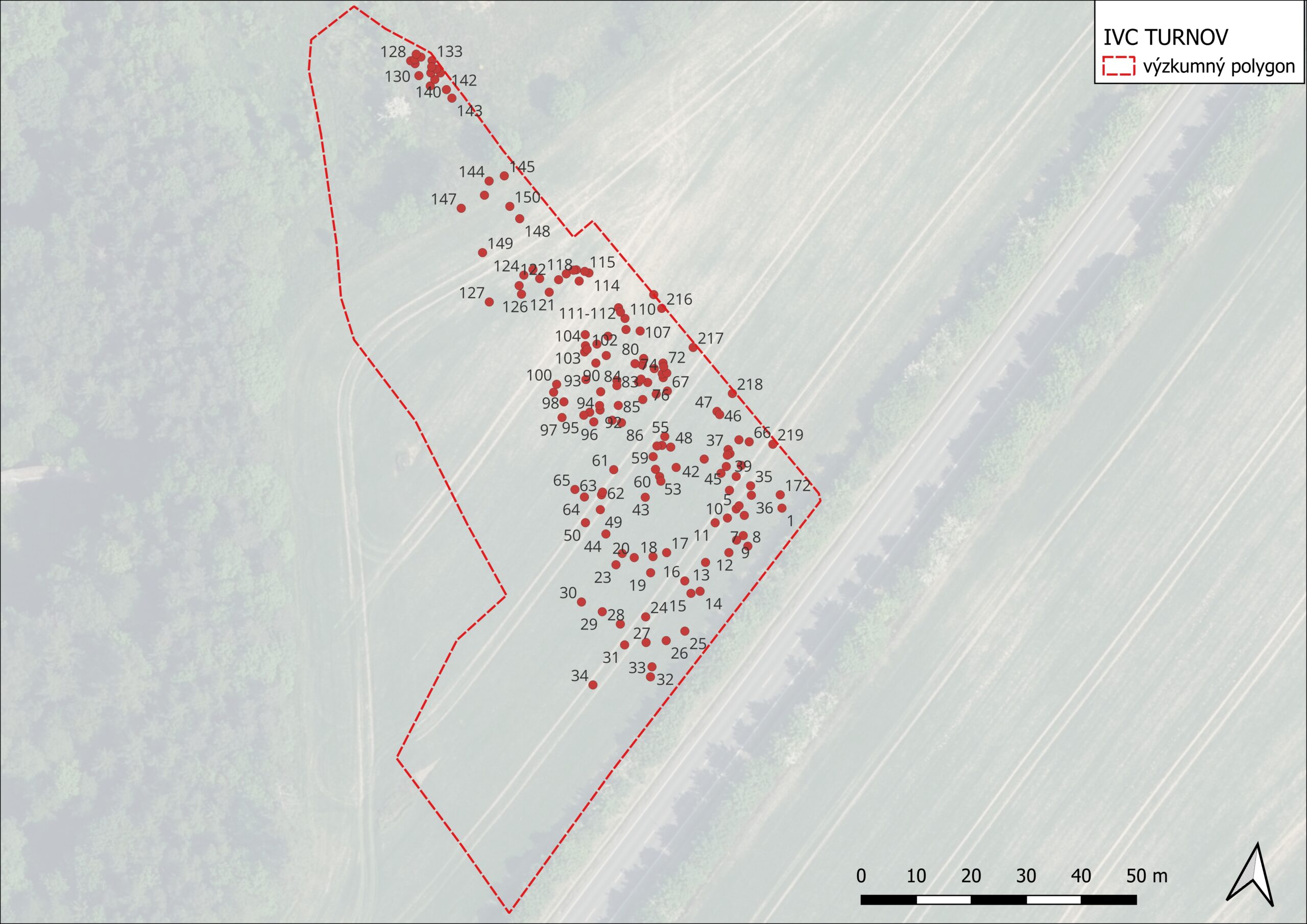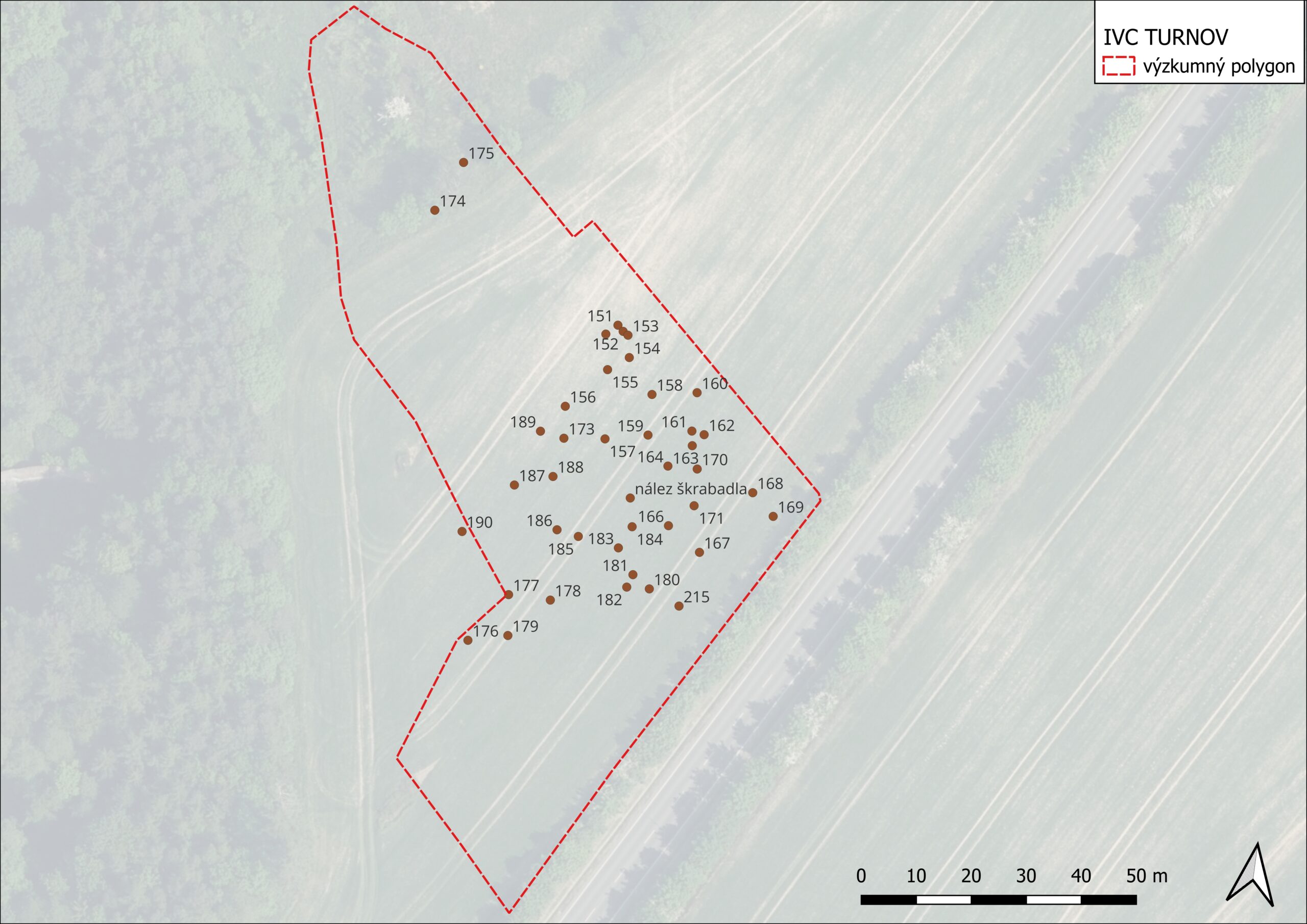 V rámci první etapy bylo registrováno 150 nemovitých objektů zahloubených do sprašové návěje. Jámy lze datovat pouze obecně do širokého rozmezí zemědělského pravěku a neobsahovaly žádné movité nálezy, které by mohly nálezové situace datovat. Radiokarbonovou analýzou se potvrdil širší časový rozptyl od eneolitu po dobu římskou. S hlavní stavbou souvisela dále stavba příjezdové komunikace k areálu IVC Turnov, jejímž investorem bylo Město Turnov. Na této ploše rovněž proběhl výzkum formou dohledu, během kterého byly dokumentovány archeologické situace datované rovněž do mladšího zemědělského pravěku.
