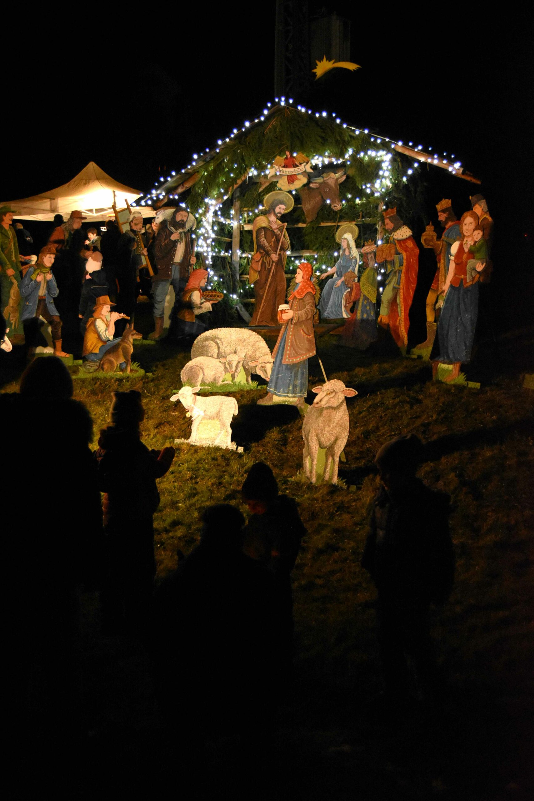 Ve veřejném prostoru je asi nejrozšířenějším vánočním zvykem stavění vánočních stromů na náměstích a návsích. Ty to stromy jsou větší obdobou domácích vánočních stromků. Podobně se v obcích objevují v tomto období i velké, nejčastěji v životní velikosti vyvedené betlémy. Na rozdíl od těch domácích, které mívají i desítky postav se venkovní betlémy ze zřejmých důvodů omezují většinou jen na samotnou svatou rodinu, ale lze najít i velké betlémy i s dvěma desítkami postav. Tyto betlémy bývají zpravidla zhotovovány místními umělci. Postavy jsou většinou malované na dřevěných deskách, ale vyskytují se i betlémy trojrozměrné vyřezávané nebo například slaměné. Betlémy i vánoční stromy se ve veřejném prostoru rozšířili v posledních 30 letech. Obojí se v posledních letech stávají i předmětem soutěžení obcí, a bývá vyhlašována soutěž či anketa o nejkrásnější strom atd.