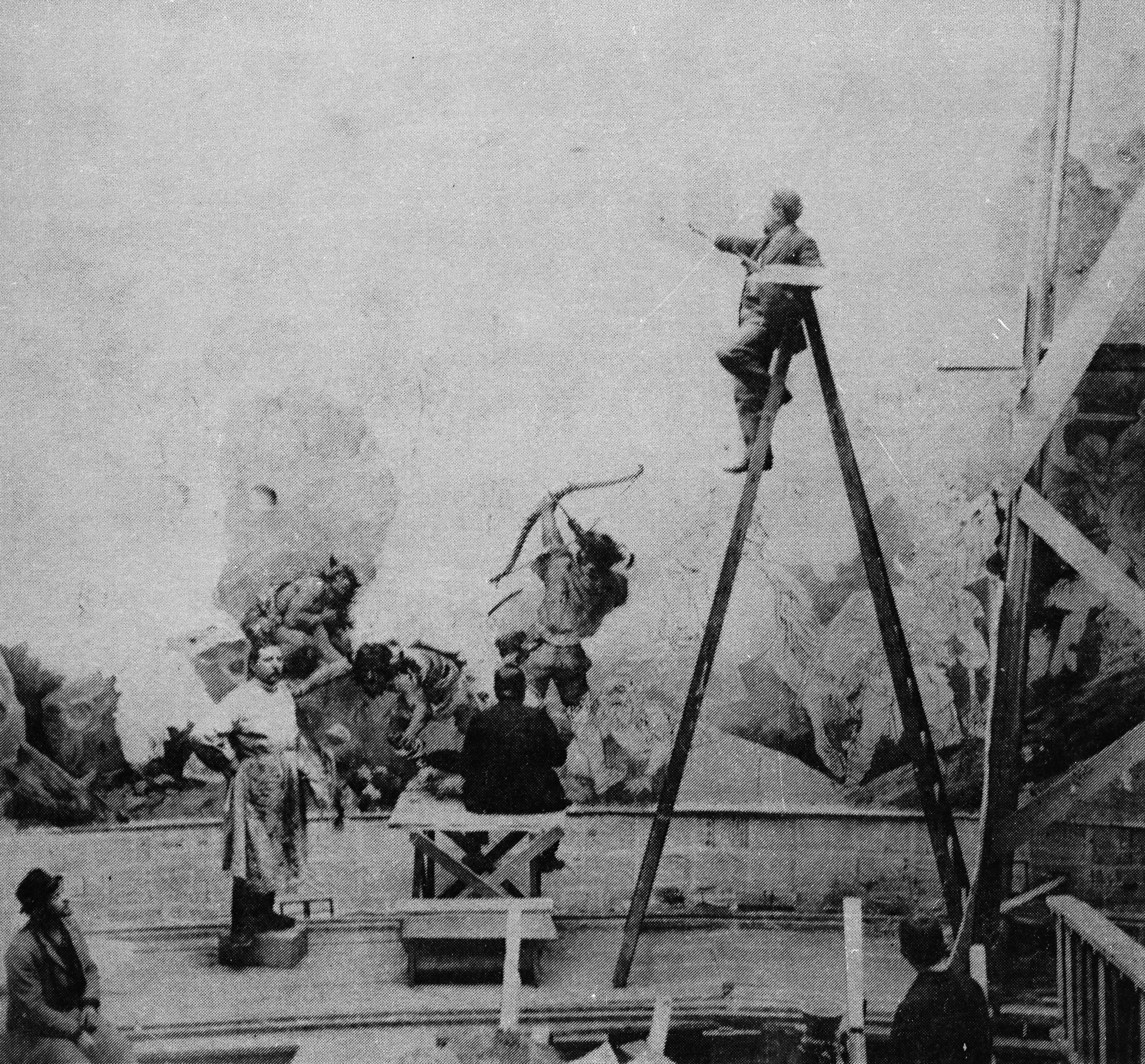 Obraz Pobití Sasíků pod HrubouSkálou o rozměrech 10 × 8,5 m vznikl v rekordním čase pro pavilon Klubu českých turistů v Praze. Autorem figurální části byl Mikoláš Aleš, na díle se dále podíleli Vojtěch Bartoněk, Karel Vítězslav Mašek, Václav Jansa a scénograf Karel Stapfer.