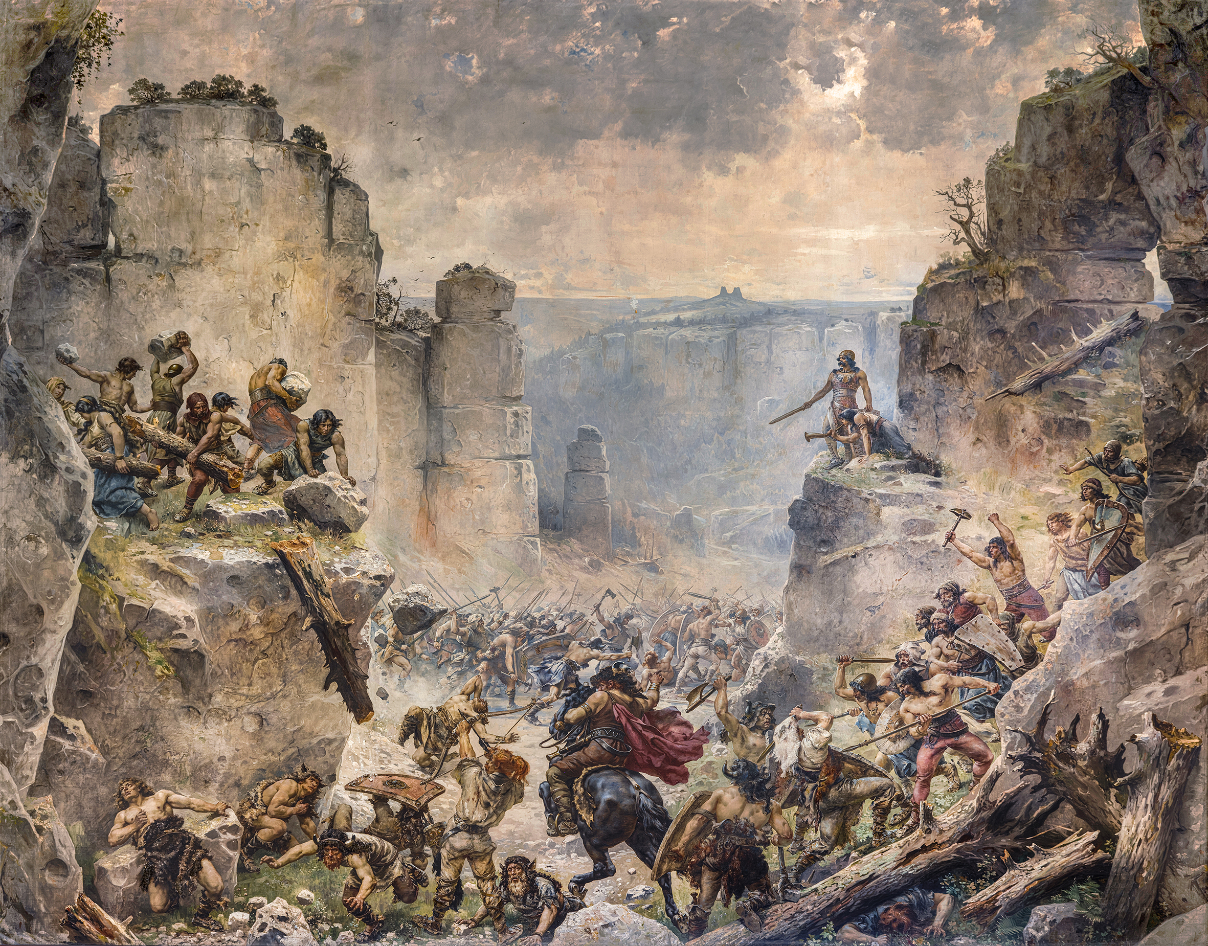 Do Turnova se obraz dostal v roce 1925, kde byl až do roku 1931 vystaven v samostatném pavilonu. Dílo v jediném výjevu zachycuje deset tisíc let vývoje zbraní a oděvů – od paleolitu po středověk. Nejde však o reálnou bitvu, ale romantizovanou představu ovlivněnou dobovým vlastenectvím a Rukopisy. Výstava nabízí kritický pohled na tento obraz, včetně historického kontextu, možných inspirací i skutečné bitvy z pozdního středověku, která mohla stát za legendou. Představíme repliky zbraní, oděvů i výzbroje