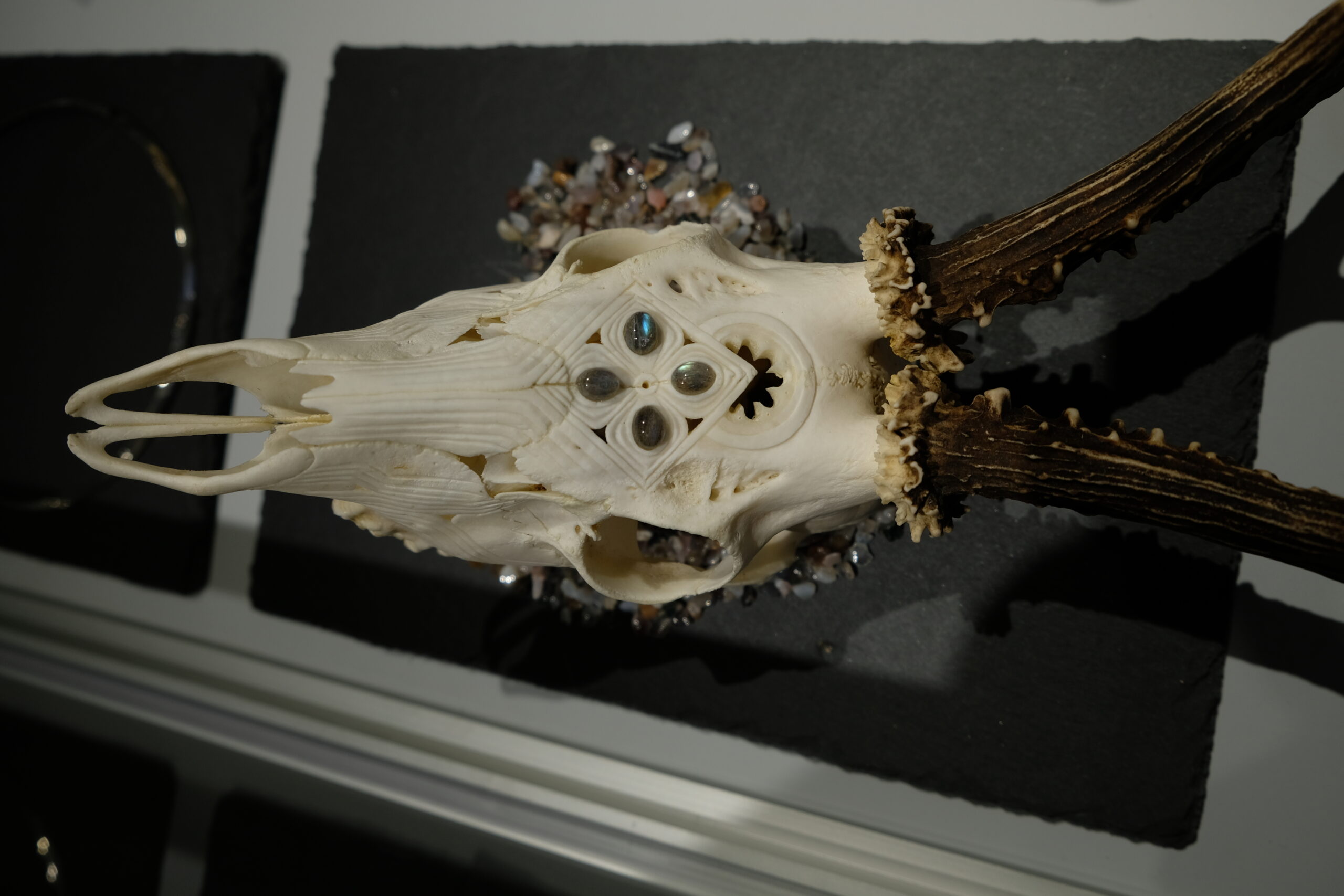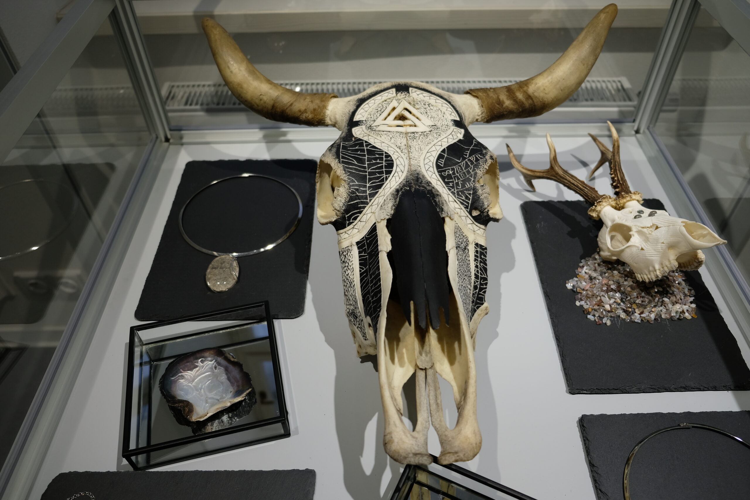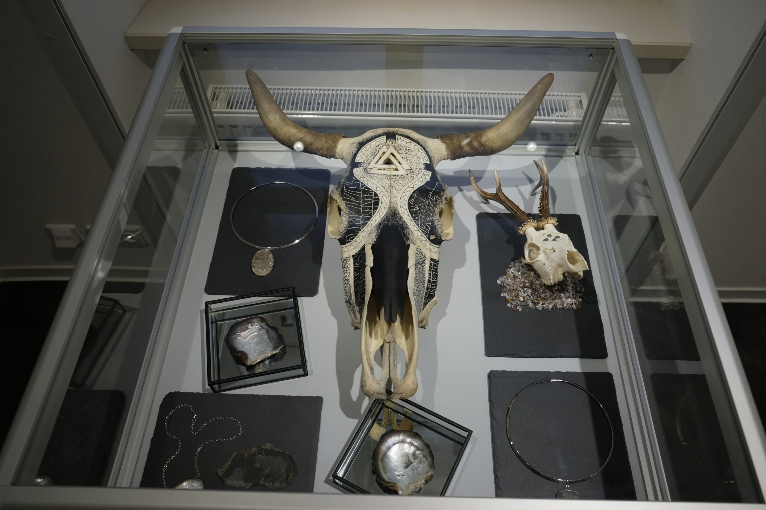 Anna Ježková vyučuje na SUPŠ od roku 2019. Ke světu drahokamů a jejich uměleckořemeslného zpracování přitom tíhla již od dětství. Pro umění glyptiky – reliéfní řezby do kamene, jehož výuce se v současnosti na škole věnuje, ji nadchla naše přední rytečka Eva Víšková-Mrákotová. Charakteristické pro tvorbu Anny Ježkové je od roku 2017 rytí zvířecích skeletů a paroží, jak dokládají nejen exponáty na školní výstavě, ale také její maturitní práce v podobě lebky krokodýla ozdobené drahokamy (2017) ve stálé expozici SUPŠ a VOŠ. S oblibou kombinuje minerály a kosti, jako inspirační zdroj jí často slouží vikingské příběhy a legendy. V jejích špercích mají kameny vždy dominantní pozici, autorka se přitom snaží zdůraznit zejména jejich přírodní strukturu v kontrastu s lesklým povrchem. Zvířecí lebky zdobené rytinami a aplikacemi z drahokamů i jednoduché leštěné tvary masivních drahokamů v decentní montáži jako závěsy náhrdelníků střídají lidské a zvířecí figury ryté v perleti. Brusičské práce A. Ježkové si můžete mimo výstavu prohlédnout a zakoupit v rodinném obchodě v Holicích.