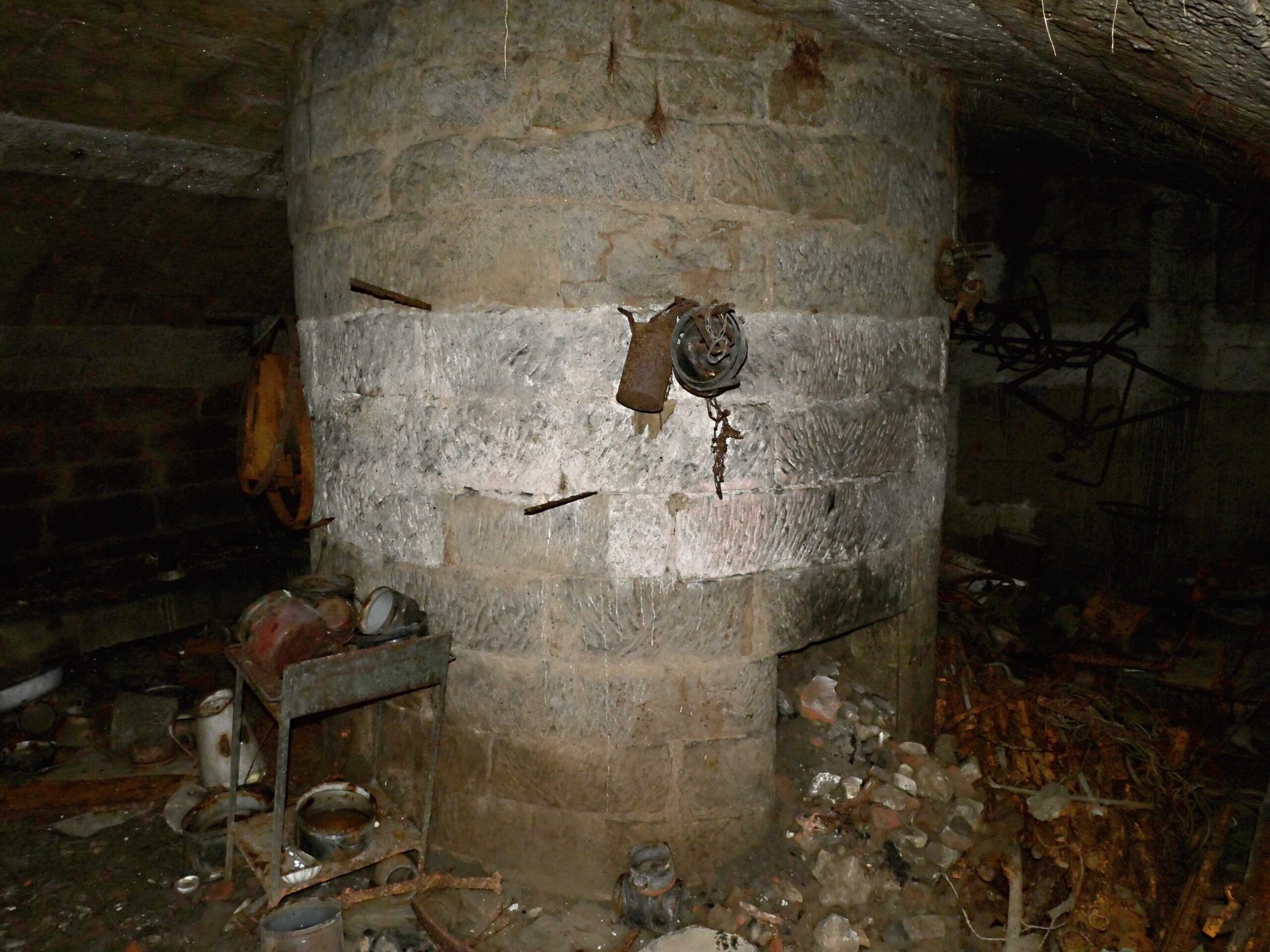 Bagrem byla narušena část čela severní místnosti „A“, v jejímž středu se nachází pozoruhodný válcovitý objekt s dutým vnitřkem a po obvodu stěn místnosti kamenná lavice. Místnost jsme interpretovali ledárnu – sofistikovanou dobovou chladničku. Válcovitý útvar má velice tenké stěny (20 – 30 cm) a nejsou ohořelé. Bohužel je vnitřek zasypaný a nelze o něm příliš mnoho říci. Objekt je menší analogií veřejnosti neznámého sklepení nacházejícího se pod parkovištěm u restaurace U Meha. Místnost „A“ zasahovala do projektu stavby, tudíž bylo rozhodnuto o částečném ubourání po statickém zajištění. Tento krok sice nenávratně poznamenal podzemního prostoru, avšak umožnil jeho zachování pro možné budoucí zpřístupnění veřejnosti.